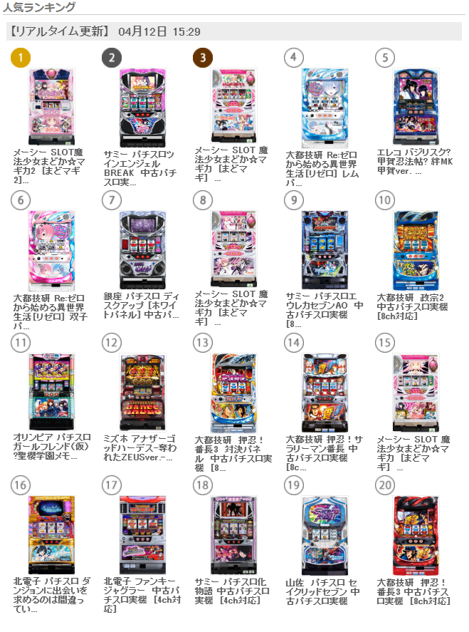本日の値下げ情報 〔2020/4/12〕4/12 15:29時点でのリアルタイムランキングです! 2020年4月12日 2020年4月12日 Twitter Tweet 〔2020/4/12〕 4/12 15:29時点でのリアルタイムランキングです! 個人的には、まどマギ系が今、凄い勢いで売れている感じです。 おうちでスロット実機を打って遊ぶ人が続々と増えていますね! 外出自粛が促される中だからこそ、家スロを通して少しでも明るく楽しい時間を過ごしていただければと思います。 関連記事: 関連記事はありません Twitter